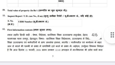 बीरों देवल में मां चंडिका महावन्याथ देवरा यात्रा में शामिल हुए मुख्यमंत्रीयुवाओं में राष्ट्रभावना जगाने का प्रयास: फिल्म “अजेय” की विशेष प्रस्तुतिनिर्मल बाग, पशुलोक और हरिद्वार रोड क्षेत्र में अवैध निर्माण सीलचकरपुर स्थित वनखंडी महादेव मंदिर में महाशिवरात्रि मेले का भव्य शुभारंभमुख्यमंत्री धामी बोले—नया चैम्बर बनेगा न्यायिक विमर्श का प्रमुख केंद्र