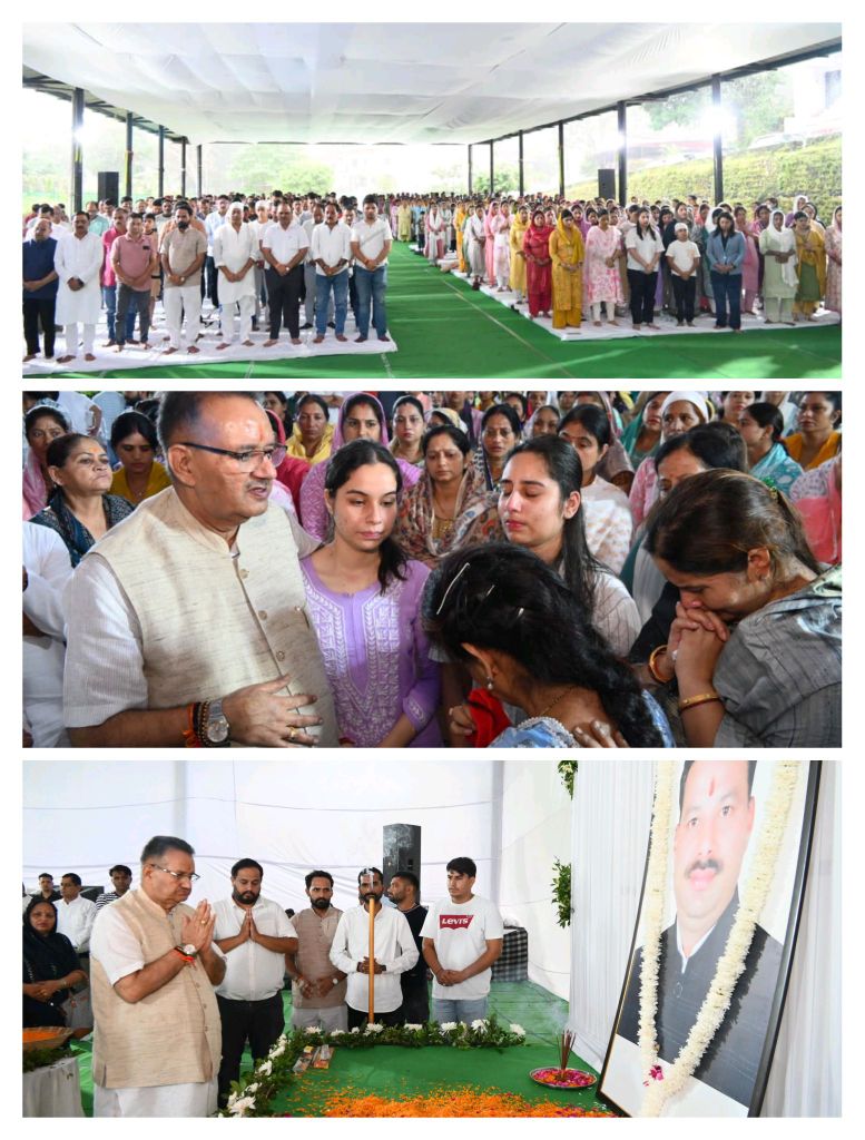 कैबिनेट मंत्री गणेश जोशी ने आज देहरादून के गुनियाल गांव स्थित बहुउद्देशीय भवन में पूर्व जिला पंचायत उपाध्यक्ष दिवंगत दीपक पुंडीर की श्रद्धांजलि सभा में प्रतिभाग किया। इस दौरान कैबिनेट मंत्री जोशी ने दिवंगत दीपक पुंडीर के चित्र पर पुष्पांजलि अर्पित कर उन्हें श्रद्धांजलि दी।