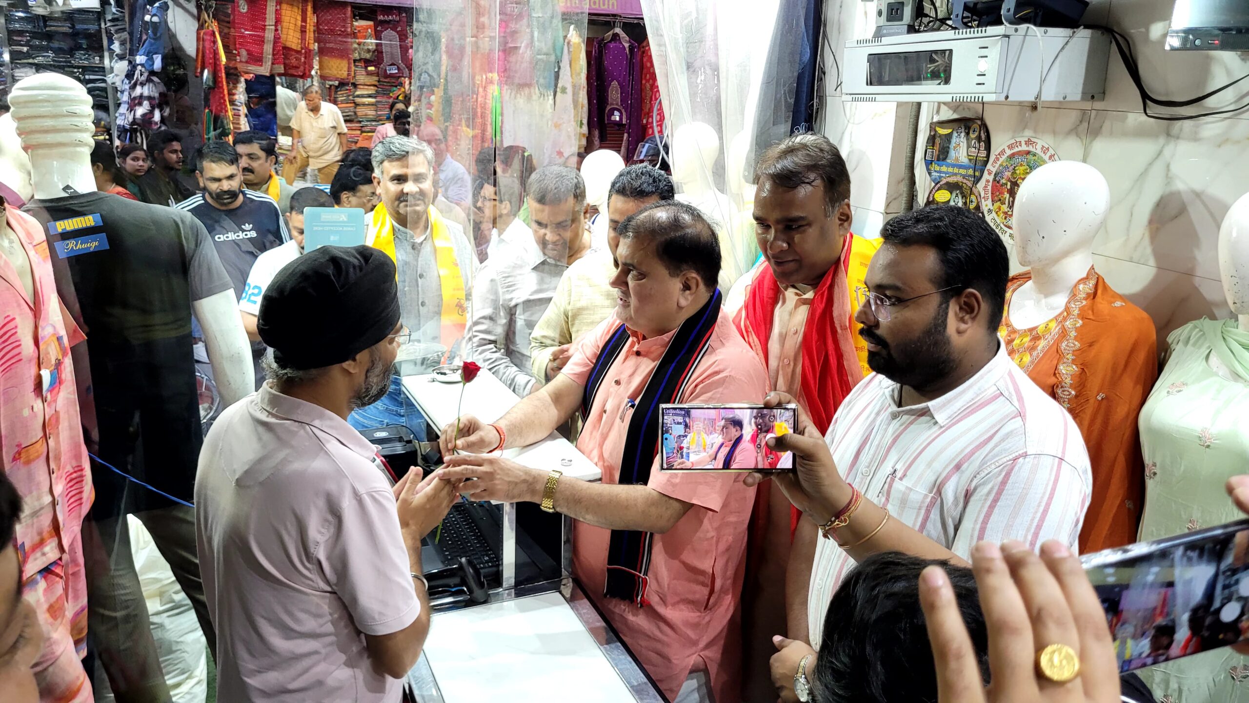 झंडा बाजार में व्यापारियों से मिले, जनजागरूकता स्टिकर लगाए, स्वदेशी को अपनाने का दिया संदेश