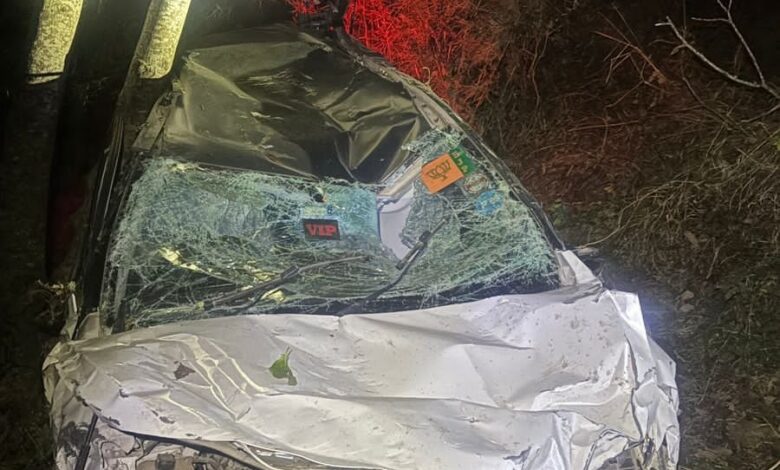 खाई में गिरी कार :, 2 की मौत, 6 घायल…