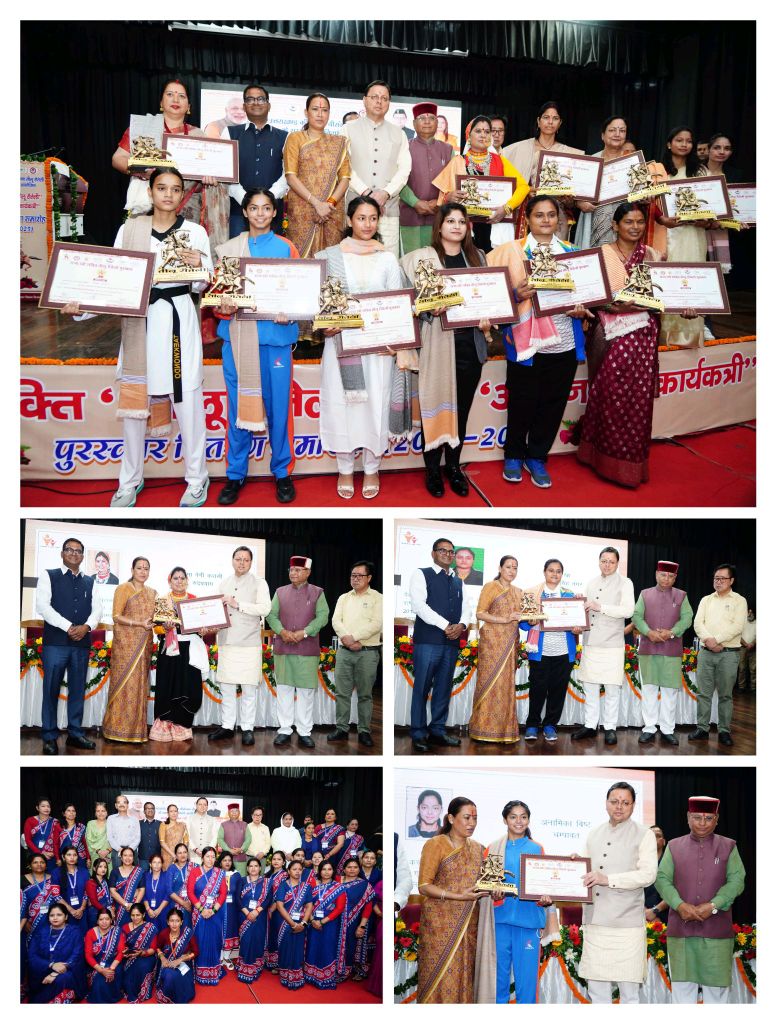 मुख्यमंत्री धामी ने दिया 13 महिलाओं को तीलू रौतेली और 33 आंगनवाड़ी कार्यकत्रियों को उत्कृष्ट सेवा कार्य सम्मान।