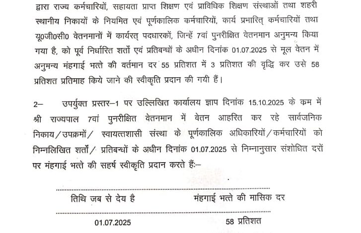 धामी सरकार का बड़ा फैसला : सातवें वेतनमान वाले कर्मचारियों का DA 55% से बढ़ाकर 58%, 1 जुलाई से प्रभावी