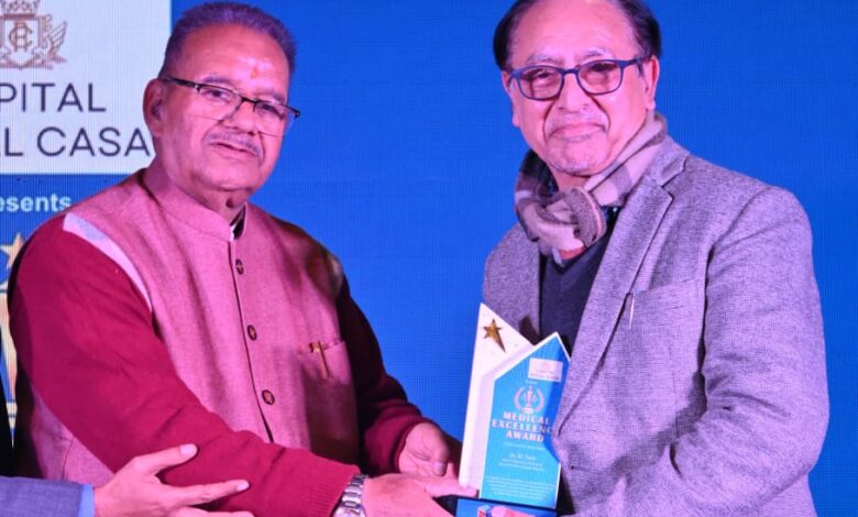 हिंदुस्तान मेडिकल एक्सीलेंस अवॉर्ड” कार्यक्रम में स्वास्थ्य क्षेत्र में उत्कृष्ट कार्य करने वाले चिकित्सकों को पुरस्कार प्रदान करते कैबिनेट मंत्री गणेश जोशी