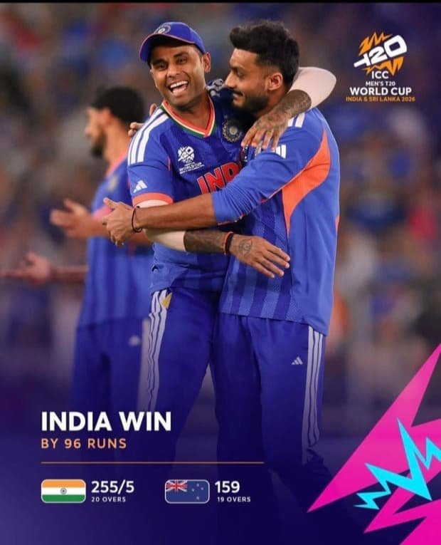 टी-20 विश्वकप के फाइनल में न्यूज़ीलैंड को पराजित कर विश्व विजेता बनने पर भारतीय क्रिकेट टीम को हार्दिक बधाई।