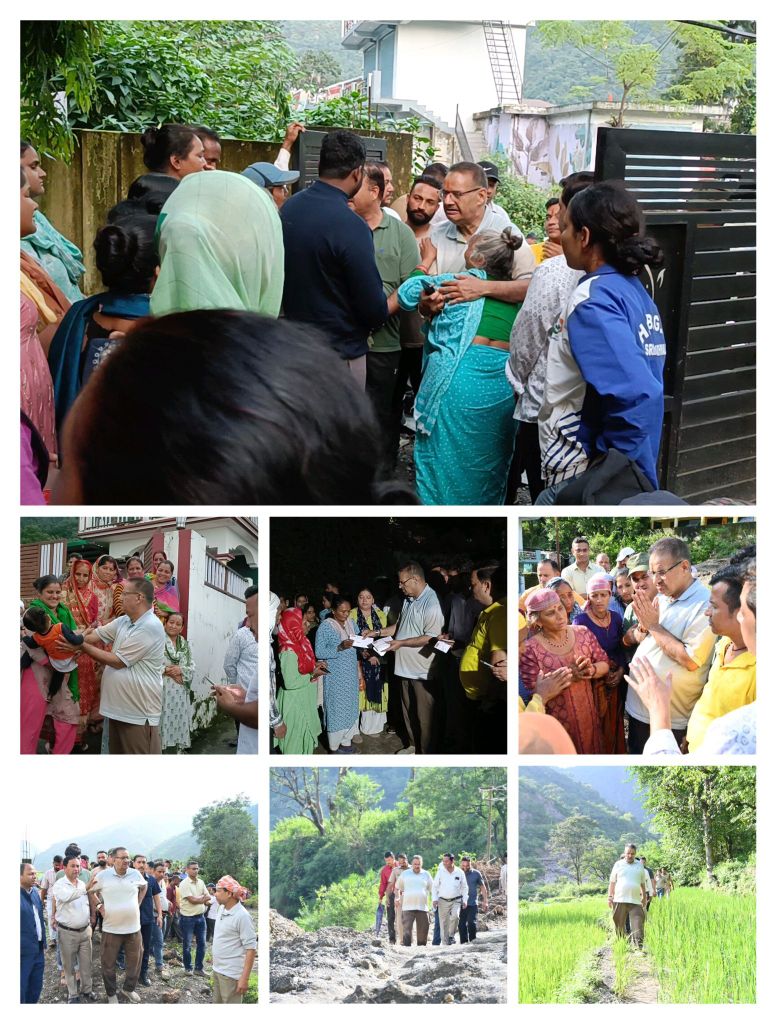 आपदा प्रभावित क्षेत्र का मंत्री गणेश जोशी ने किया निरीक्षण,प्रभावित परिवारों को बँधाया ढाँढस अधिकारियों को दिए निर्देश,सरकार से की 300 करोड़ की मांग।