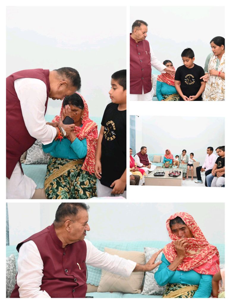 सैनिक कल्याण मंत्री गणेश जोशी ने आज बीते जून माह में भोपाल में ट्रेनिंग के दौरान हादसे से सात गढ़वाल राइफल के उत्तराखण्ड जनपद टिहरी के निवासी दिवंगत हवलदार विजय सिंह गुसाईं के परिवारजनों से उनके विलासपुर काण्डली आवास पहुंचकर भेंट की।