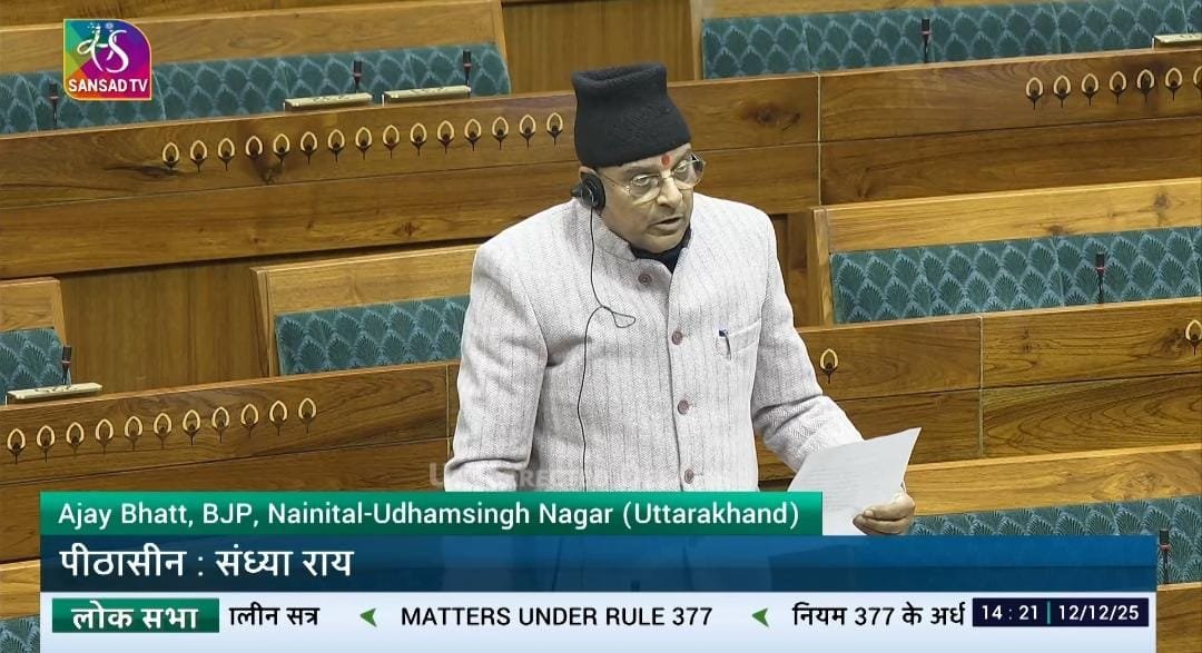 उत्तराखंड की दुर्गम भौगोलिक परिस्थितियों और विकासखंडों के बीच लंबी दूरियों को देखते हुए लोकसभा में आज एक महत्वपूर्ण मुद्दा गूंजा। नैनीताल-उधम सिंह नगर संसदीय क्षेत्र के सांसद और पूर्व केंद्रीय राज्य मंत्री अजय भट्ट ने सदन में नियम 377 के अधीन राज्य में विकासखंडों की संख्या बढ़ाए जाने की पुरजोर मांग उठाई।